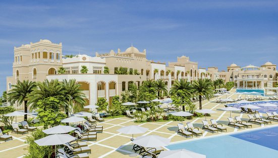 Der „große Palast“ macht seinem Namen mehr als Ehre: Allein die Empfangshalle mit Springbrunnen, gewaltigem Leuchter und Säulen ist atemberaubend! Ruhe ist garantiert dank Adults only: Mindestalter 18 Jahre.