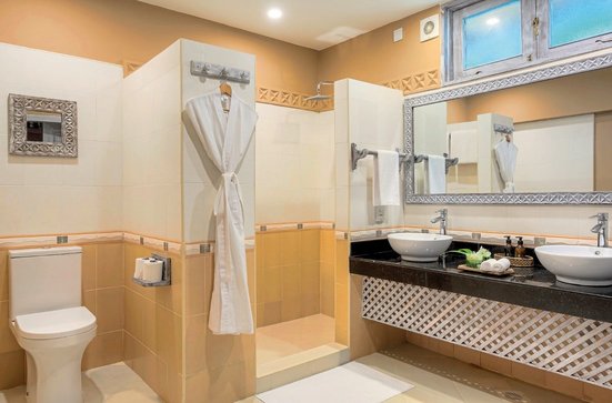 - 36-40 qm, Doppel, Gartenseite, Moskitonetze, Doppelbett, Dusche, Regendusche, WC, Bademantel, Badeslipper, Haartrockner, Klimaanlage, Mini-Kühlschrank, Safe, TV, WLAN, Wasserkocher, Kaffee/Tee, Balkon oder Terrasse, Aufdeck-Service, bei Ankunft im Zimmer Wasser