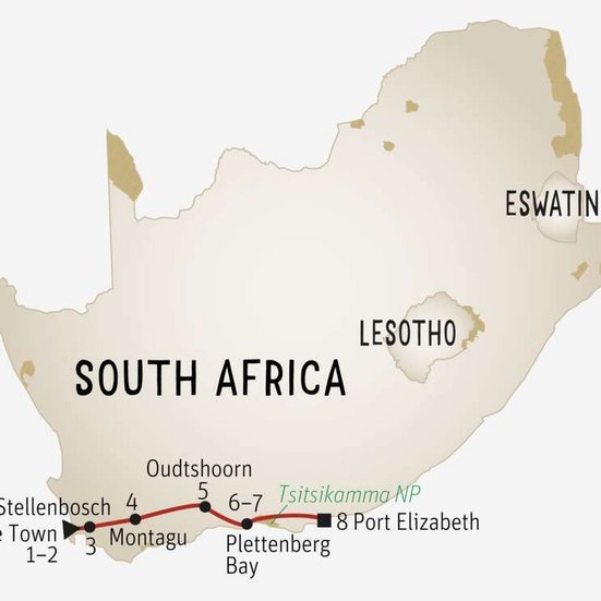 Mietwagenrundreise – Auf eigene Faust entlang der verträumten Gardenroute. Erleben Sie: Die Trendmetropole am Fusse des Tafelberges, das Kap der Guten Hoffnung, romantische Weingüter und südafrikanische Weinkunst, das farbenprächtige Hinterland, Strausse und zauberhafte Küstenabschnitte.