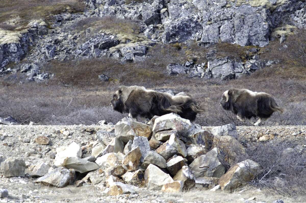 Im weitläufigen Tal können oft Moschusochsen beobachtet werden. Die Vegetation leuchtet in den feurigen Farben des Herbstes.