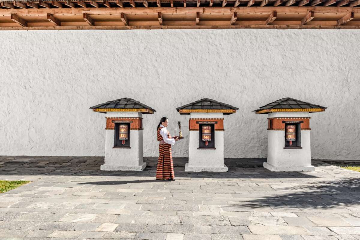 Die heutige Etappe ist kurvig, dafür eindrücklich. Auf dem Dochula Pass auf über 3'000 m ü.M. wehen hunderte Gebetsfahnen im Wind und 108 Chörten sollen an die Lehre Buddhas erinnern. Vor allem aber ist hier die Panoramasicht auf das Bergmassiv des Himalaya schlicht spektakulär. Picknick à la Aman unterwegs. Für 3 Nächte ist das Amankora Punakha Ihr Zuhause.