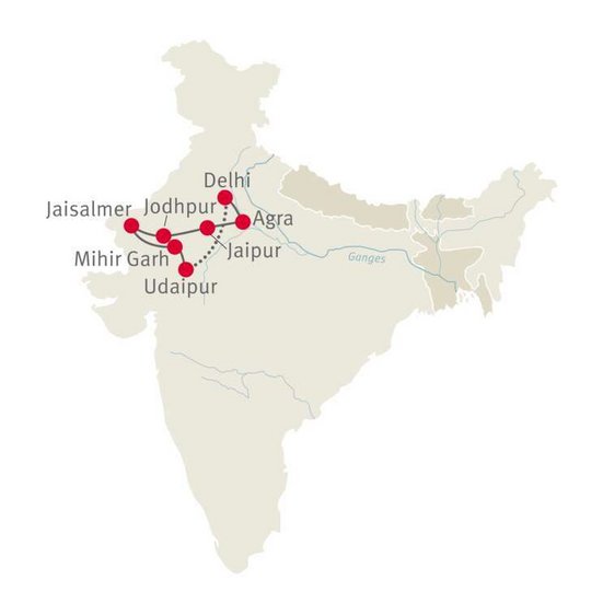 Einmal wie ein Maharaja durch Rajasthan reisen und in exklusiven Luxusresorts und märchenhaften Palasthotels wohnen. Die beeindruckenden Landschaften und die stolzen Menschen des Wüstenstaates werden Sie begeistern. Eine Reise der Superlative!