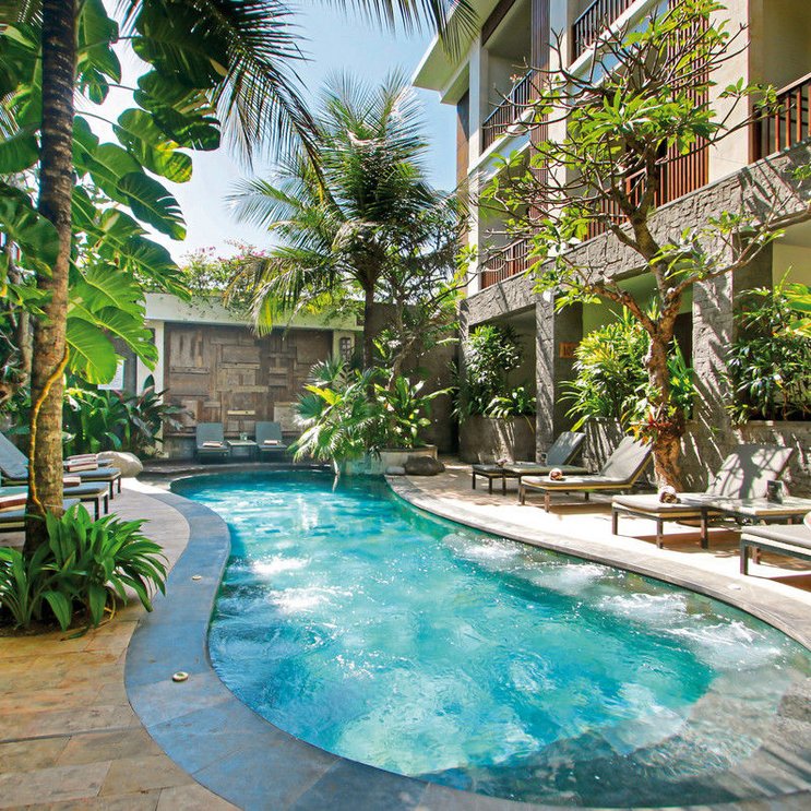 Unternehmungslustige Gäste schätzen die Lage des stylischen Boutiquehotels mit dem ganz besonderen Charme sehr. Traumhaft schön ist die Natursteinterrasse am Pool, umgeben von üppigen Tropenpflanzen.