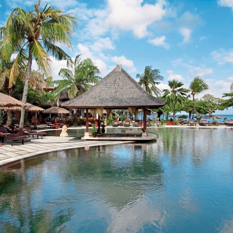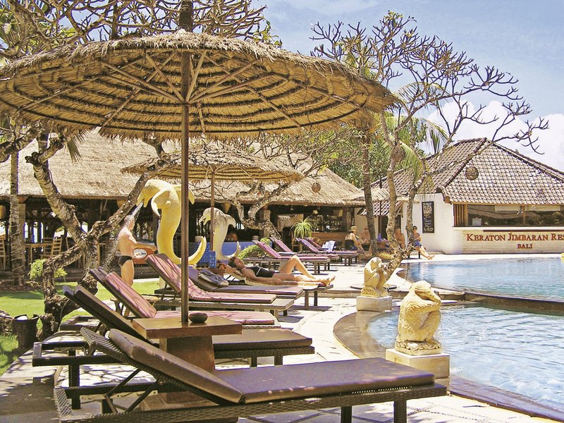 Der wohl schönste Strand von Bali ist der Jimbaran Beach – und der liegt Ihnen in diesem Traditionshaus zu Füßen! Probieren Sie unbedingt die Köstlichkeiten in den nahen, ursprünglichen Fischrestaurants!