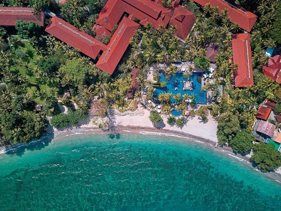 Der Name ist Programm: Sheraton steht für hohen Standard und Qualität. Das Deluxe-Resort liegt am Ortsrand und direkt am dunklen Sandstrand. Ruhesuchende finden hier ein Paradies! Der Garten ist einmalig in Senggigi, überaus prachtvoll und üppig – herrlich!