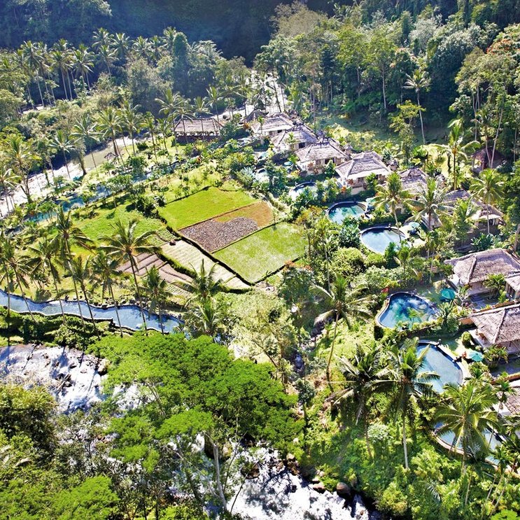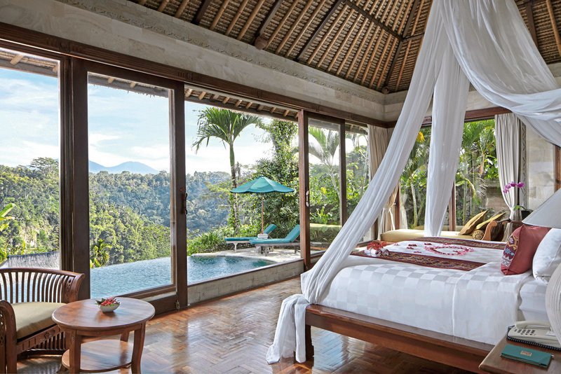 In diesem luxuriösen Resort verfügen alle Villen über einen privaten Pool oder Jacuzzi und einen traumhaften Blick auf das Ayung-Fluss-Tal und das tropische Grün des Dschungels – der perfekte Ort, um Körper, Geist und Seele aufzuladen!