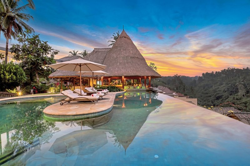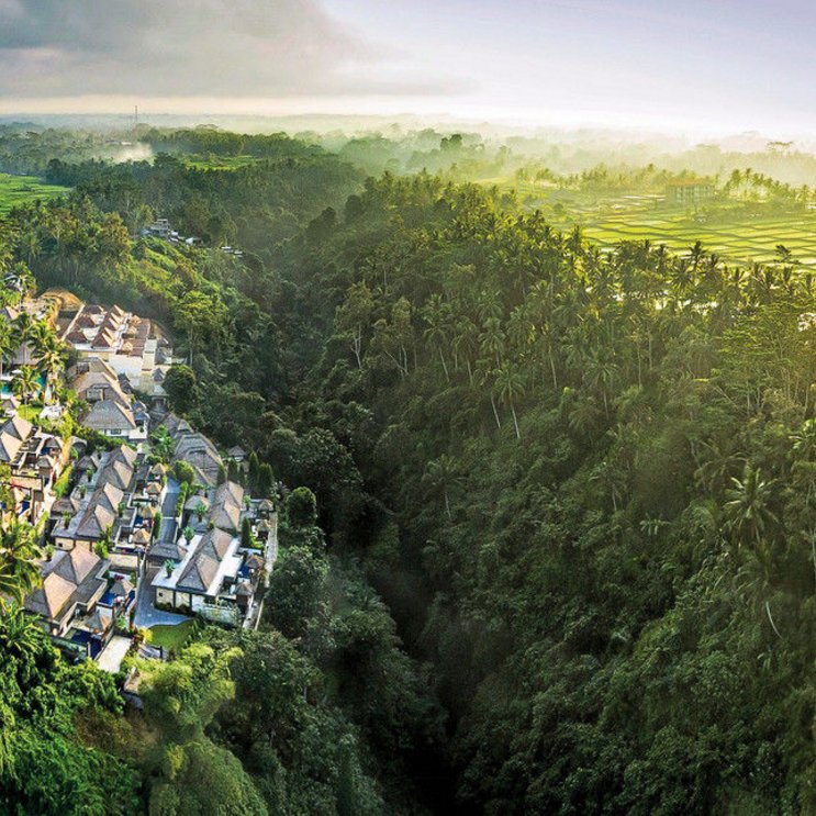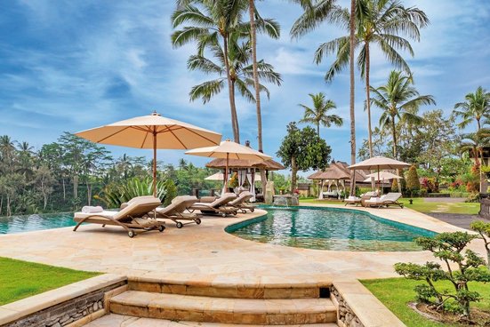 Das Hotel: Das exklusive Boutique-Resort liegt in der Nähe des Künstlerorts Ubud auf einem Hügel und bietet spektakuläre Ausblicke auf das Tal des Wildwasserflusses Petanu River und persönlichen Service auf höchstem Niveau. Zu den Annehmlichkeiten des Resorts zählen die zwei mehrfach ausgezeichneten Restaurants, Bar, Swimmingpool, Bibliothek, Fitness-Center, Squashplatz, Boutique und Akoya Spa mit Behandlungsräumen, Dampfbad, Plunge- und Whirlpool (Anwendungen und Schönheitsbehandlungen gegen Gebühr). Der eigene Helipad macht es möglich, Ausflüge der besonderen Art direkt ab dem Resort anzubieten. Ubud ist ca. 5 Autominuten (Transfer ohne Gebühr), der Flughafen Denpasar ca. 40 km entfernt.