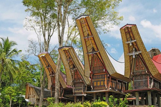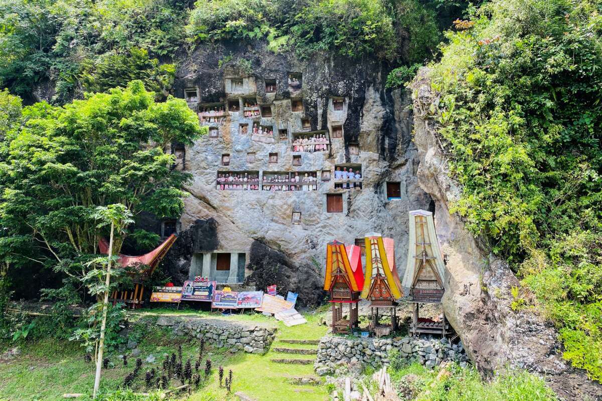 Besuch einer Seidenweberei der Bugis. Weiterfahrt ins Toraja-Hochland. Spektakuläre Aussichtspunkte verführen zu Stopps. Es folgen faszinierende Einblicke in die Kultur der Toraja. Besuch der hängenden Gräber von Lemo, der Höhlengräber von Londa sowie der Babybäume. Spaziergang durch Kete Kesu mit seinen traditionellen Reisspeichern und kunstvoll verzierten Ahnenhäusern, den Tongkonan. Eine Panoramawanderung über Reisterrassen, durch Bambuswälder und kleine Dörfer ermöglicht den Kontakt zu Einheimischen und Einblick in das Alltagsleben im Hochland.