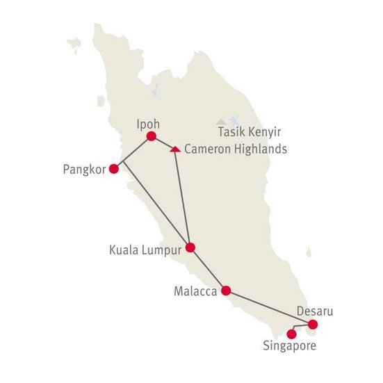 Gönnen Sie sich das Feinste, was Malaysia zu bieten hat! Von Süd nach Nord reisen Sie von einem Höhepunkt zum nächsten und sind dabei in ausgesuchten Unterkünften zu Gast.