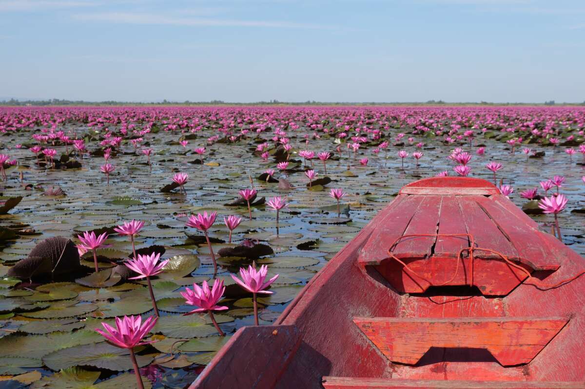 Das Blütenmeer des «Red Lotus Lake» ist absolut bezaubernd und am schönsten zwischen Dezember und März zu bestaunen. Frühmorgens, wenn die Blüten sich langsam öffnen, ist der ideale Moment, um auf einem kleinen Fischerboot in dieses rosafarbene Meer einzutauchen. Auch ist der See natürlicher Lebensraum von vielen Vögeln sowie auch Fischen und Pflanzen - ein Traum für Ornithologen. Zurück im Pimali erwartet Sie ein stärkendes Frühstück, bevor Sie dann später mit dem Velo zum schönen Tempel Pho Chai pedalen. Ebenso spannend ist der Besuch der Parkanlage Sala Kaew Ku, wo Sie auf Skulpturen inspiriert aus der buddhistischen und hinduistischen Mythologie treffen. Anschliessend legen Sie selber Hand an und werden unter Anleitung der Auszubildenden ein richtig typisches Abendessen zubereiten und dann später auch geniessen.