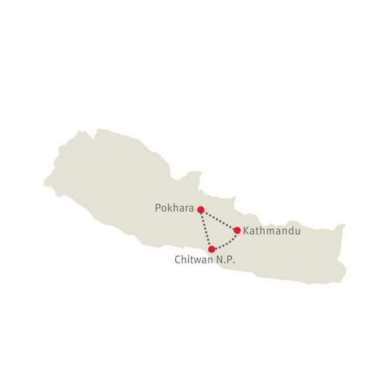 Diese Reise führt Sie von Kathmandu, der Hauptstadt Nepals, zuerst in den Chitwan Nationalpark, wo Sie Bekanntschaft mit Nashörnern, Elefanten und Krokodilen machen und anschliessend nach Pokhara, der kleinen Stadt am Phewa-See.