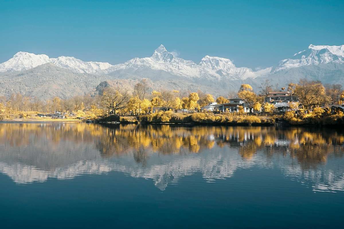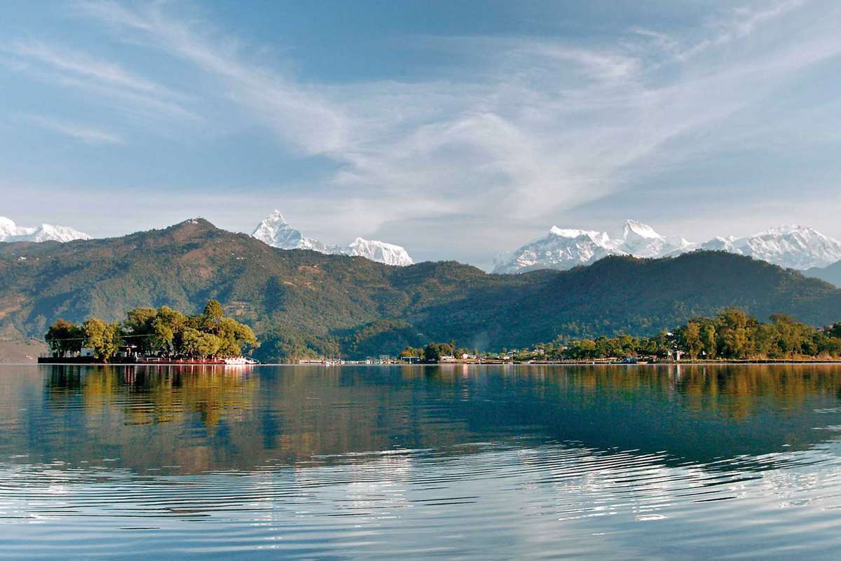 Ein kurzer Inlandflug bringt Sie nach Pokhara, der Stadt am Phewa-See. Hier ist der Ausgangspunkt für Trekkings in die Annapurna-Region. Der Ausblick auf das Bergmassiv ist einmalig und verzaubert in der Kombination mit den Seen. Pokhara bietet eine tolle Mischung von Natur und Kultur. Am Nachmittag besuchen Sie den Barahi-Tempel mit dem Boot.