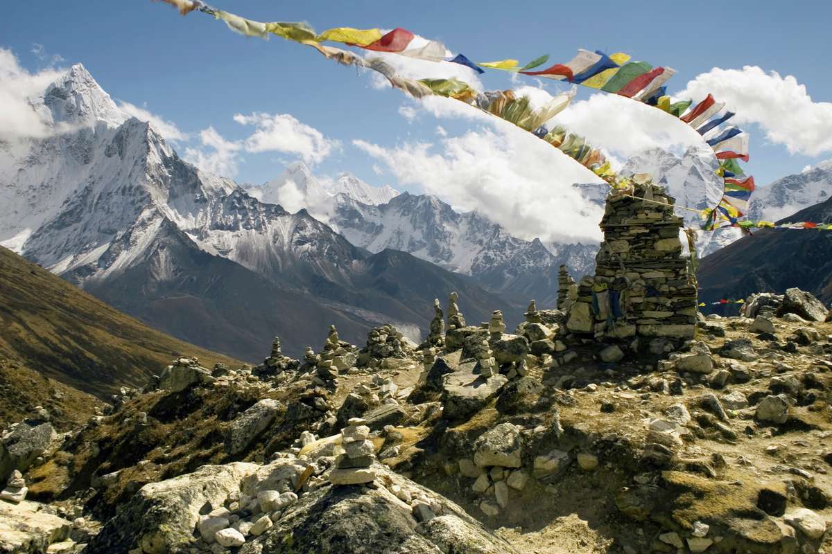 Gebetsfahnen weisen den Weg zur schneeweissen Boudhanath Stupa. Vielleicht können Sie noch einige Karma-Punkte sammeln. Auch Bhaktapur, die ursprünglichste der drei alten Königsstädte, darf nicht fehlen. Die lebhafte Stadt fasziniert durch alte, schön verzierte Holzhäuser.