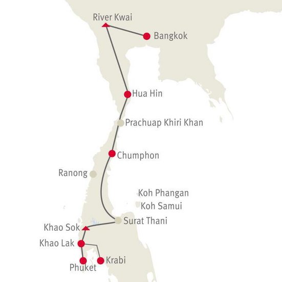 Tag 3: River Kwai – Hua Hin. Die Folgetage entsprechen der kürzeren Reise Tage 2-5.