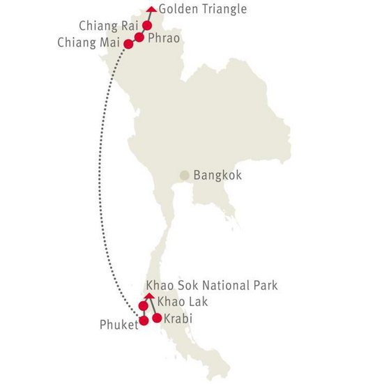 Kulturelle Höhepunkte im Norden, kombiniert mit traumhafter Natur im Süden, Aktiverlebnissen und charmanten Boutique Hotels - das perfekte Thailand Erlebnis von Nord bis Süd!