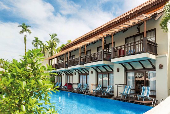 Ein Stück Thailand wie aus dem Bilderbuch: ein üppiger Garten mit Seerosenteichen, schöne Häuser mit viel dunklem Holz. Pools, Restaurants, Spa und Fitness-Center lassen keine Wünsche offen.