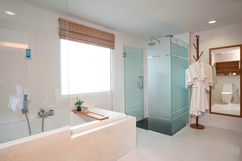 - 26-30 qm, Villa, Dusche, Badewanne, WC, Haartrockner, Klimaanlage, Minibar kostenpflichtig, Safe, TV (Flachbildschirm), Kaffee/Tee, Terrasse