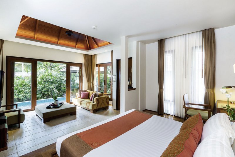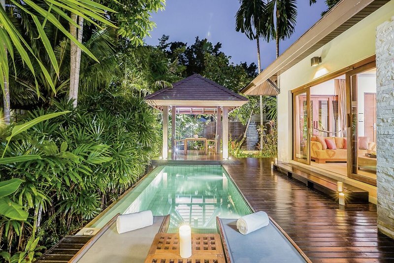 - 151-200 qm, Villa, Gartenseite, Gartenblick, Nichtraucher, optisch getrennter Wohn-/Schlafraum, Sitzecke, Schreibtisch, 1 Doppelbett, Badewanne, Außendusche, WC, Haartrockner, Klimaanlage, Minibar kostenpflichtig, Safe, TV (Smart-TV), WLAN, Wasserkocher, Kaffee/Tee, Terrasse (möbliert), Privatpool, 24-h-Zimmerservice, Anzahl Zimmer: 15, Zimmerservice (ca. 7-22:30 Uhr)