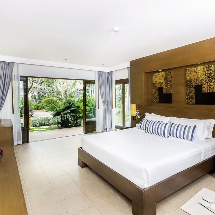 Wie im Garten Eden, umgeben vom Grün, liegen die Zimmer und Villen im Schatten der Palmen. Der Panoramablick auf den Golf von Thailand ist einzigartig. Ein ruhiger und luxuriöser Zufluchtsort zum Genießen.