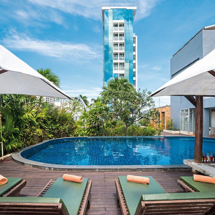 Hier im Herzen Pattayas bieten sich viele Freizeitmöglichkeiten: Der Strand ist einen kurzen Spaziergang entfernt, ein großes Shopping-Center auch! Entspannung verheißen Pool und Bar auf dem Hoteldach.