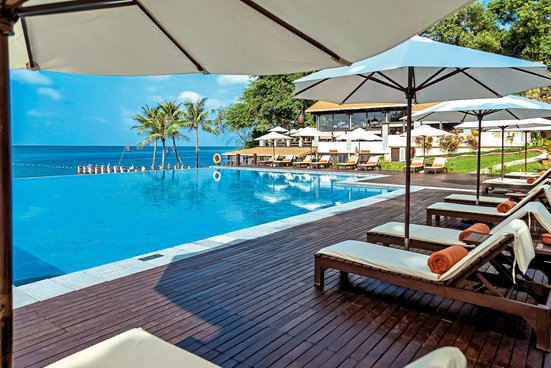 - 1 Pool: Infinity-Pool, Sonnenschirme, Liegen, Badetuch
