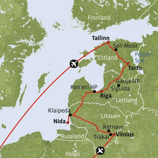 Auf der heutigen Route halten Sie zunächst im schönen Kemeri-Nationalpark: kleine Wanderung auf einm Holzsteg umgeben von Moosen, Moorkiefern und Wassertümpeln. Mittagessen auf einem Hof in ländlicher Atmosphäre mit regionalen Spezialitäten, bevor es nach Klaipeda weitergeht: Rundgang durch die wichtigste Hafenstadt Litauens. Fährüberfahrt auf die Kurische Nehrung, wo Sie die nächsten zwei Nächte verbringen. (F, M)