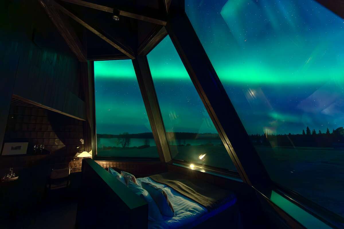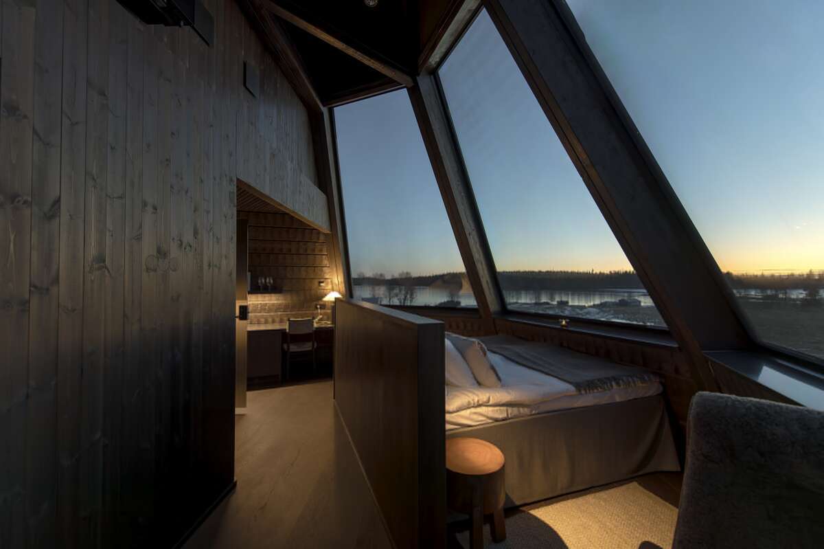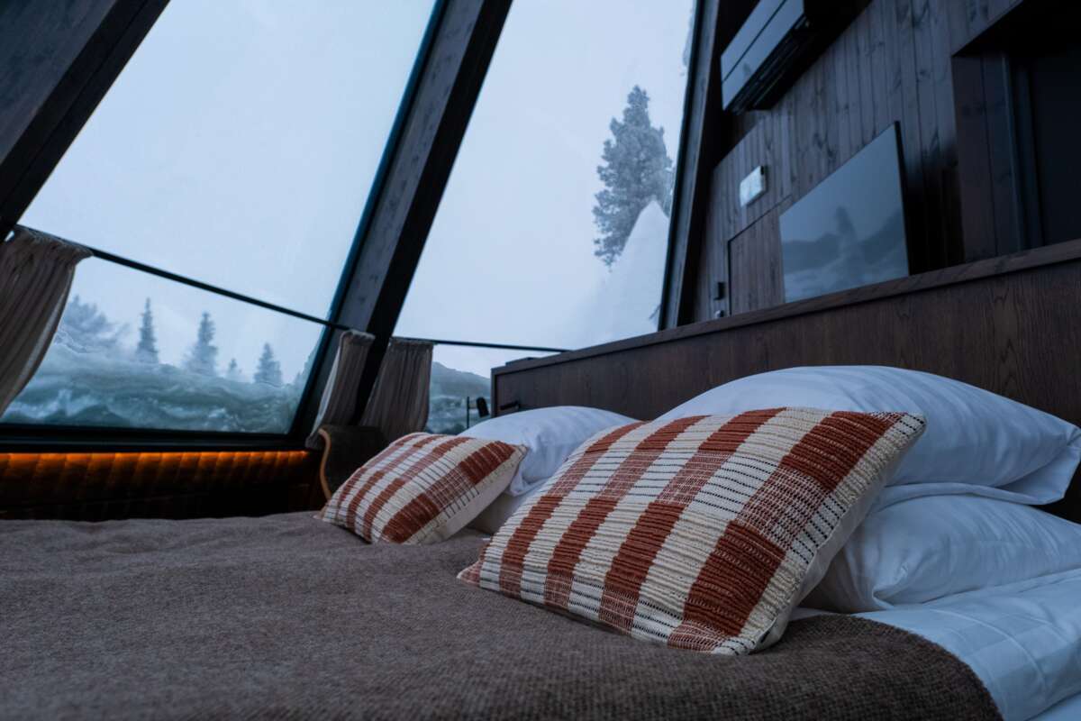 Die modernen Nordlicht-Kotas verfügen über grosse Panoramafenster und geben Ihnen so die Möglichkeit, die Nordlichter direkt vom Bett aus zu beobachten. Die Unterkunft bietet jeweils Platz für bis zu zwei Personen und begeistern mit einem hochwertigen Interieur.