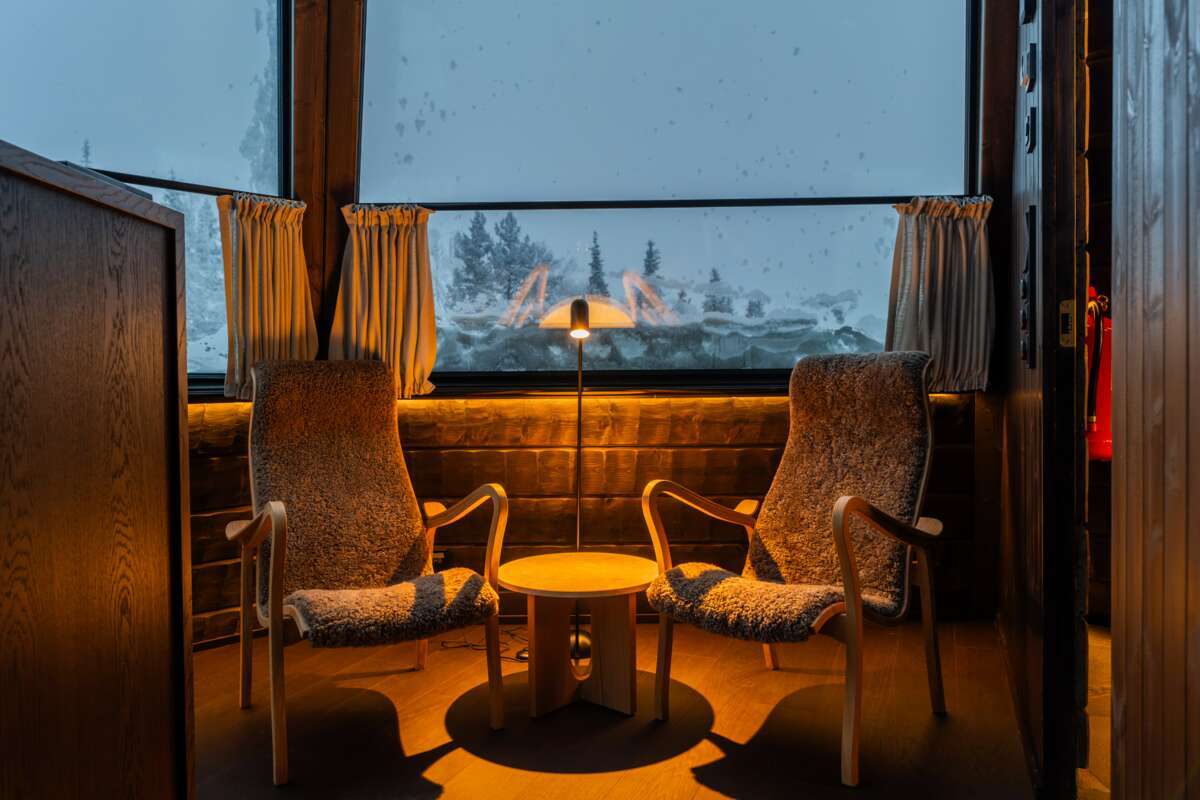 Zur Ausstattung jeder Nordlicht-Kota gehört ein Doppelbett, ein Badezimmer mit WC/Regendusche, Nespresso-Maschine und Minibar sowie WiFi.