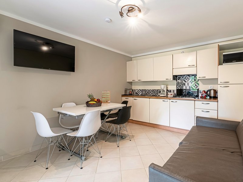 - 26-30 qm, Appartement, Erdgeschoss, separates Schlafzimmer, kombinierter Wohn-/Schlafraum, 2 Einzelbetten, Doppelbettcouch, Dusche, Klimaanlage, Safe, TV, Kochnische, Essecke, Geschirrspüler, Mikrowelle, Kaffeemaschine, Kühlschrank, Terrasse (möbliert), Bettwäsche kostenfrei, Handtücher kostenfrei, Energiekosten (kostenfrei), Endreinigung selbst oder zahlbar vor Ort (ca. 95 EUR/Aufenthalt), (ca. 95 CHF/Aufenthalt), Kaution (Kreditkarte, ca. 200 EUR/Aufenthalt), (ca. 200 CHF/Aufenthalt)