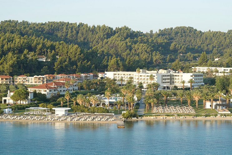 Agios Ioannis Beach Kastri, Nikiti: Langer, feiner Sandstrand mit herrlich grüner Naturkulisse.