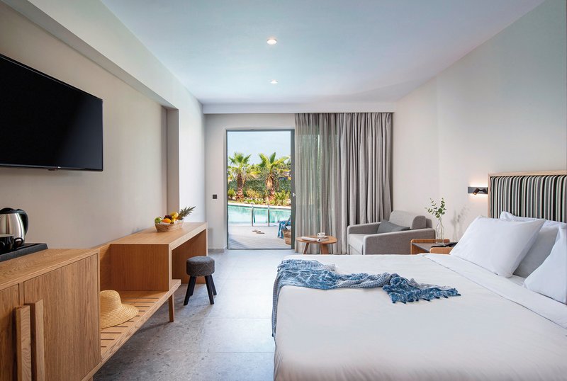 - 26-30 qm, Doppel, Superior, Poolblick, Dusche, Haartrockner, Klimaanlage, individuell regulierbar, Minibar kostenpflichtig, Auffüllung regelmäßig, Safe, TV (Sat-TV, Flachbildschirm, Smart-TV), Wasserkocher, Kaffee/Tee, Terrasse (möbliert), direkter Poolzugang, bei Ankunft im Zimmer Wasser