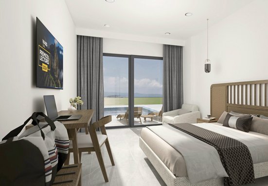 - 26-30 qm, Doppel, Poolblick, kombinierter Wohn-/Schlafraum, 1 Bad, Dusche oder Badewanne, Bademantel, Badeslipper, Haartrockner, Klimaanlage, Minibar kostenpflichtig, Safe, TV (Sat-TV), Wasserkocher, Kaffee/Tee, Balkon oder Terrasse (möbliert), direkter Poolzugang, Gemeinschaftspool, bei Ankunft im Zimmer Wasser