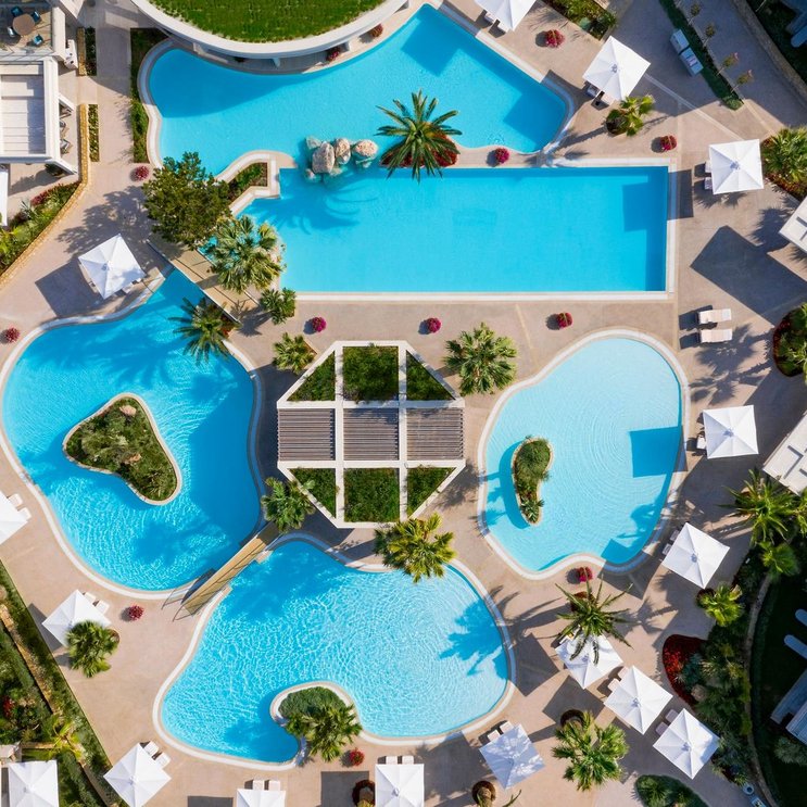 - 2 Pools: beheizbar, Sonnenschirme, Liegen, Badetuch