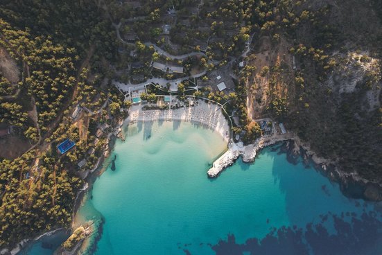 Schon in dritter Generation führt die Familie des Erbauers Yannis Sarantis die familienfreundliche Bungalowanlage. Harmonisch in die Naturlandschaft eingefügt, ist sie eine echte Wohlfühloase.