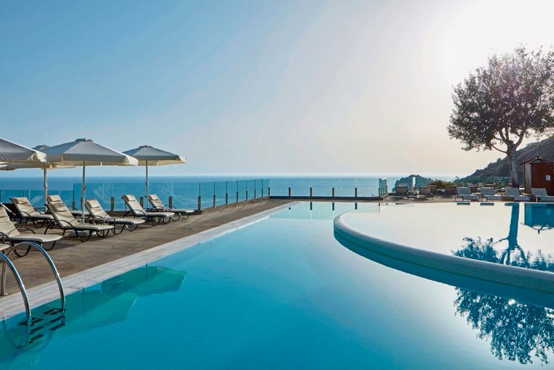 - hoteleigene Strandbar, „Thalatta Bar“, Poolbar, „Eros Bar“, Bar, „Vertigo Bar“, „Thea Bar“