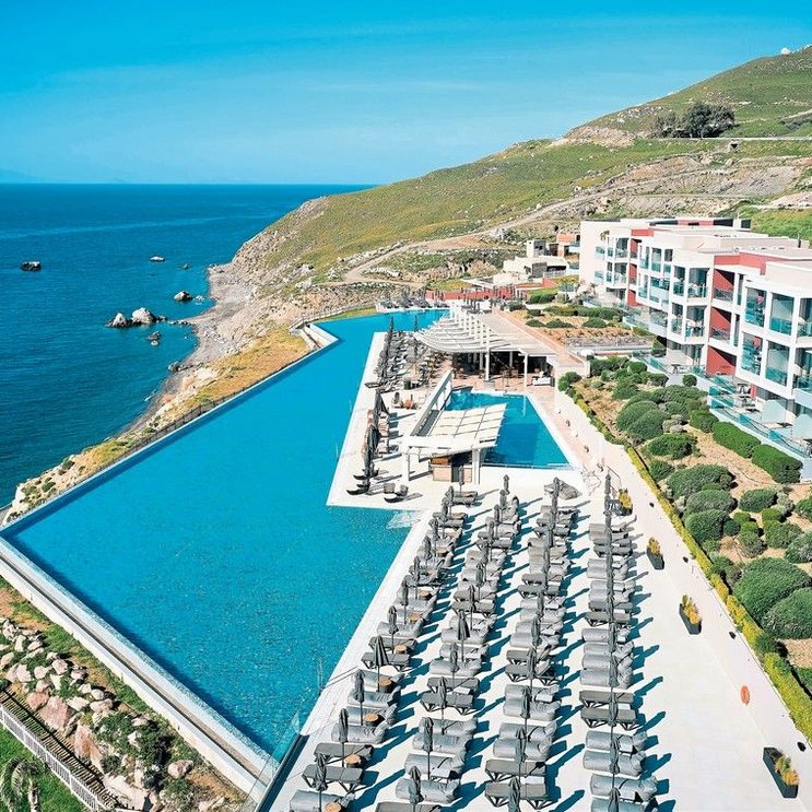 Blau, soweit das Auge reicht! Wo endet der Infinity-Pool, wo beginnt das Meer? Agios Fokas bietet neben dem herrlichen Strand auch herrliche Ruhe. Eine Oase der Stille ist der Wellness-Bereich.