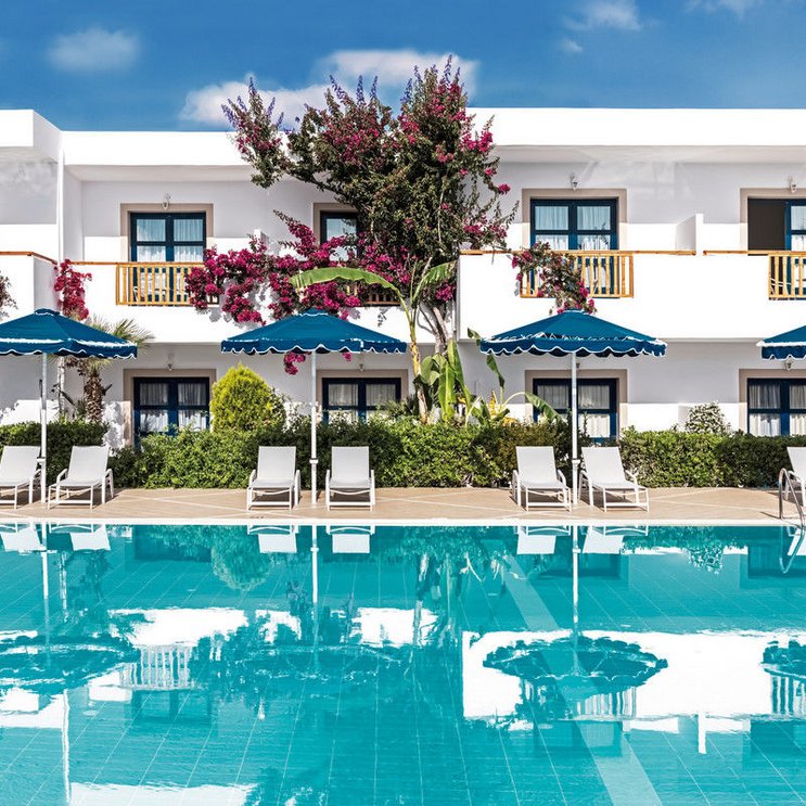Im ruhigen Strandhotel erwartet Sie mediterrane Idylle pur. Helle Zimmer mit Balkon gibt es auf Wunsch mit Meerblick. Das Beste: Der Strand ist nur wenige Meter entfernt.