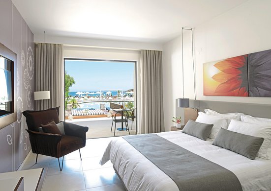 - 26-30 qm, Juniorsuite, kombinierter Wohn-/Schlafraum, Sitzecke, 1 Bad, Badewanne, WC, Bademantel, Badeslipper, Haartrockner, Klimaanlage, Minibar kostenpflichtig, Safe, TV (Sat-TV, Flachbildschirm), Kaffee/Tee, Terrasse (möbliert), direkter Poolzugang, Gemeinschaftspool, Kopfkissen-Menü