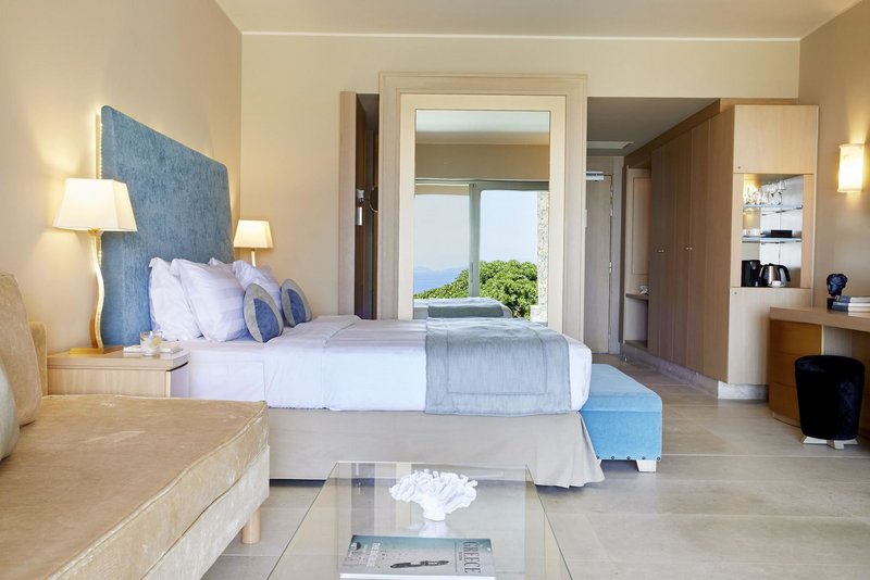 - 41-45 qm, Meerblick, Sitzecke, Schreibtisch, Doppelbett (Kingsize), Sofabett, 1 Bad, Dusche, Badewanne, WC, Bademantel, Badeslipper, Haartrockner, Kosmetikspiegel, Klimaanlage, individuell regulierbar, Minibar kostenpflichtig, Safe, 1 TV (Sat-TV, Flachbildschirm), Kaffee/Tee, Terrasse (möbliert), Privatpool, hochwertige Badartikel