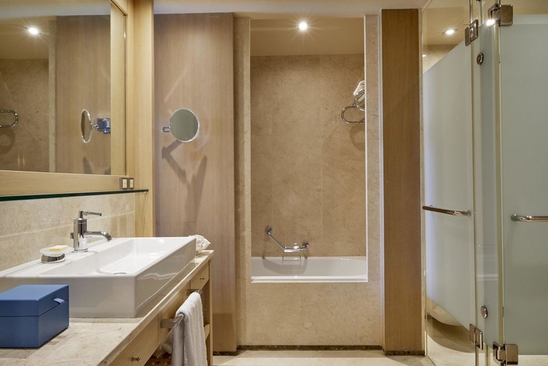 - 81-90 qm, Meerblick, kombinierter Wohn-/Schlafraum, 1 separates Schlafzimmer, Sitzecke, Schreibtisch, Doppelbett (Kingsize), Sofabett, 1 Bad, Dusche, Badewanne, WC, Bademantel, Badeslipper, Haartrockner, Kosmetikspiegel, Klimaanlage, individuell regulierbar, Minibar kostenpflichtig, Safe, 1 TV (Sat-TV, Flachbildschirm), Kaffee/Tee, Balkon oder Terrasse (möbliert), hochwertige Badartikel
