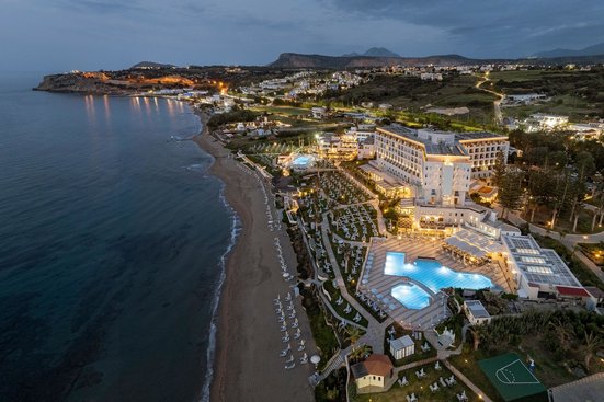 Die Architektur erinnert an den minoischen Palast in Knossos. Ein erstklassiges Hotel für sonnige Urlaubserlebnisse auf Kreta mit allem Komfort. Perfekt auch für Familien, denn die Events und Aktivitäten sprechen Urlauber jeden Alters an.