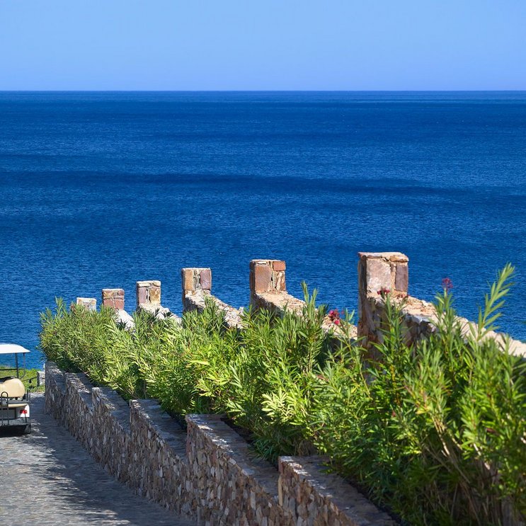 Royal Blue, königsblau, ist das Meer hier an der Nordküste Kretas. Grün leuchten die wunderschönen Gärten durchsetzt von bunten Farbtupfern der Blüten – pink, rot, cyan. Die Lobby präsentiert sich weiß, creme und sandfarben und vermittelt einen Hauch von Luxus und Eleganz.