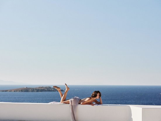 Inspiriert von der Ursprünglichkeit der Insel bezaubert das Hotel durch schlichte Eleganz, eine Wohltat fürs Auge! Sanfte Erdtöne, nachhaltige Materialien, die naturnahe Lage – eine Hommage ans ursprüngliche Mykonos!