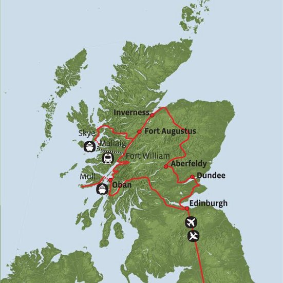 Exklusiv für Kontiki-Kunden zusammengestellt, beinhaltet die Reise viele bekannte Sehenswürdigkeiten von Schottland: mystische Täler und lang gestreckte Lochs, das schottische Hochland und die malerische Hebrideninsel Mull. Unterwegs erfahren Sie viel von der interessanten Kultur und tauchen in Schottlands bewegte Vergangenheit ein. Sie besuchen historische Orte wie das Tal Glen Coe, Schlösser und Whisky-Destillerien.