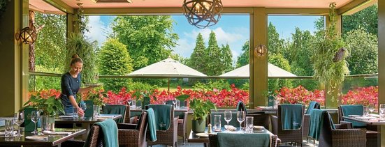 The Terrace mit Blick auf die Gärten ist der perfekte Ort, um an lauen Sommertagen "al fresco" zu speisen. In der