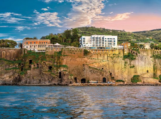 Das Hotel liegt direkt an den Steilklippen von Sorrent und zelebriert das Ambiente der 60er-Jahre aufs Schönste! Flanieren Sie durch den herrlichen Park, erfrischen Sie sich im Pool oder im Meer, das Sie durch Tunnel erreichen. Im Sommer können Sie dort auch speisen. Toll!