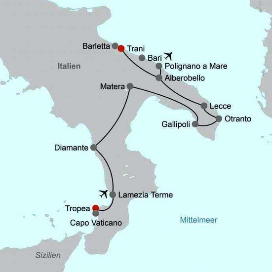 Der Süden des italienischen Stiefels zählt zu den noch ursprünglichen und schönsten Regionen Italiens. Entdecken Sie die faszinierende Mischung aus malerischen Städtchen, üppiger Natur, uralten Olivenhainen sowie traumhaften Steilküsten.