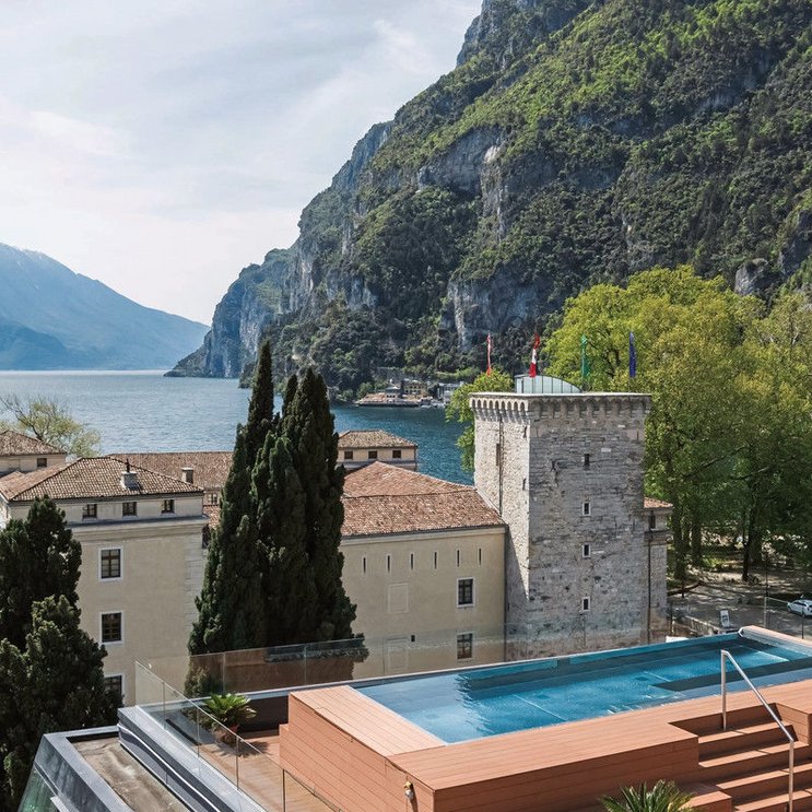 Blick auf den Gardasee? Sehr gern! Den genießen Sie von diesem Hotel in Top-Lage: Nicht nur ans Ufer, sondern auch zu Restaurants oder Einkaufsmöglichkeiten ist es von hier nicht weit. Perfekt!