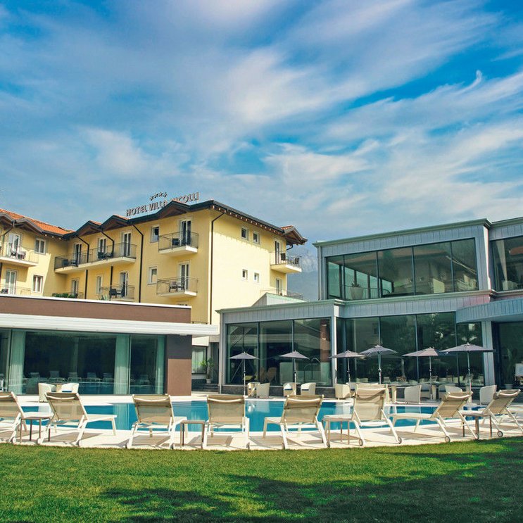 Verwöhnmomente können Sie im 4-Sterne-Hotel Villa Nicolli Romantic Resort reichlich erleben. Neben einer tollen Aussicht auf die Berge wartet auf Sie ein Garten mit Pool zur Entspannung.