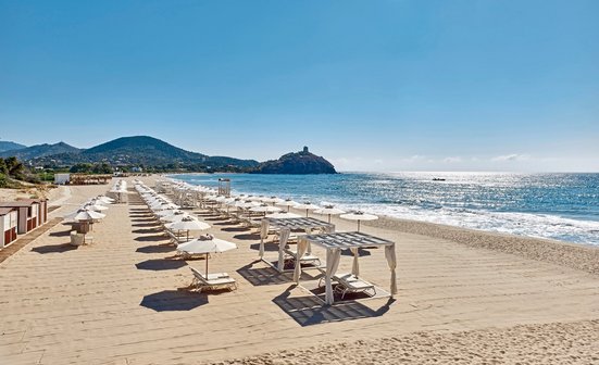 Strandleistungen am Monte Cogoni Beach inkl. (pro Zimmer 2 Liegestühle und 1 Schirm ab der 3. Strandreihe)